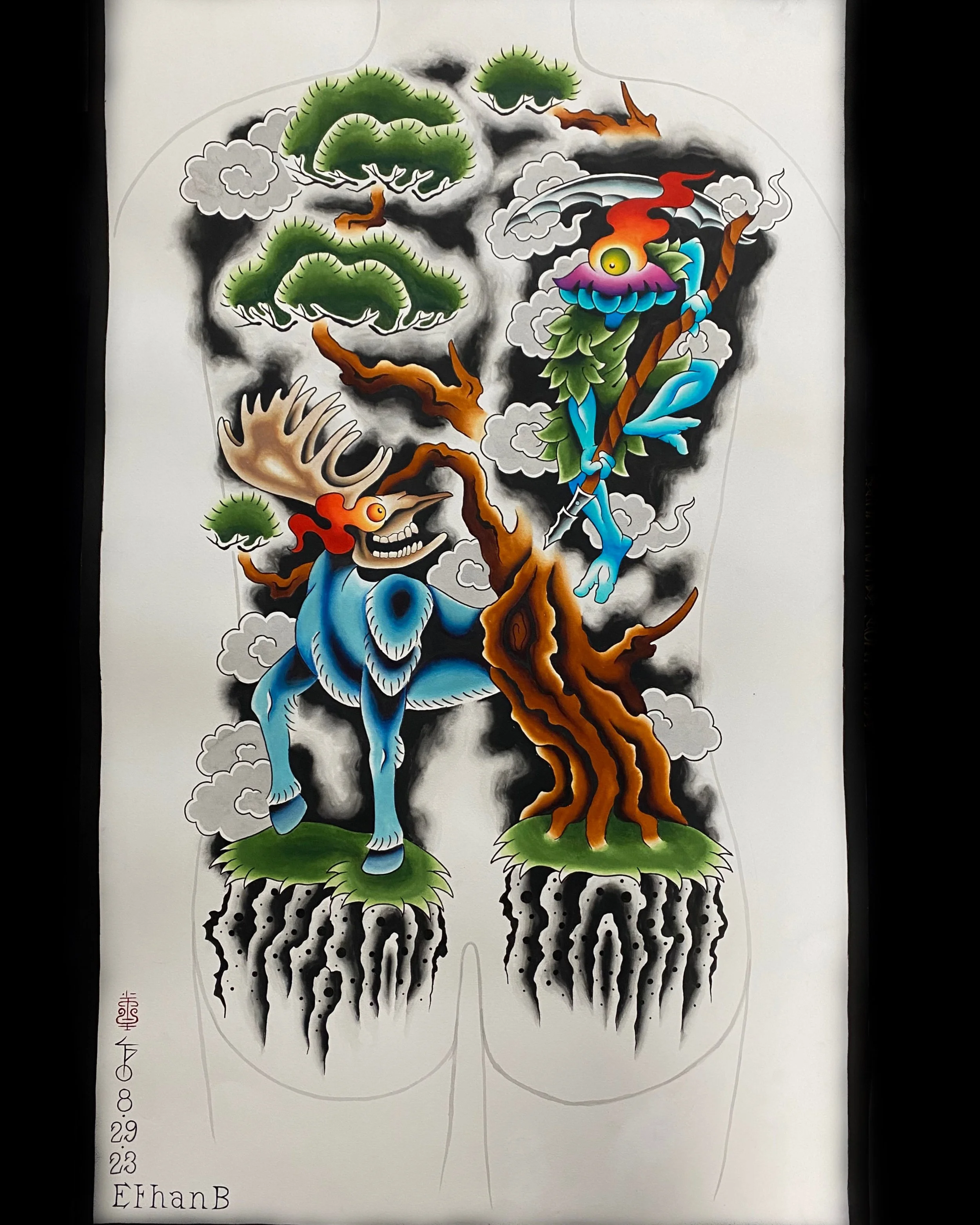 This collection of artwork was made using watercolors, acrylic paints, colored pencils, ect. Most of these paintings are made with the intention of being tattooed, called flash. An old practice amoungst many tattooers. A big influence when I first began painting flash was Sailor Jerry and Jay Cooper. I also had lots of coaching and help over the years from many talented artists and friends who have an appreciation for art. Hope you enjoy this little collection of paintings. If you would like to own some of this art please check out my Etsy.